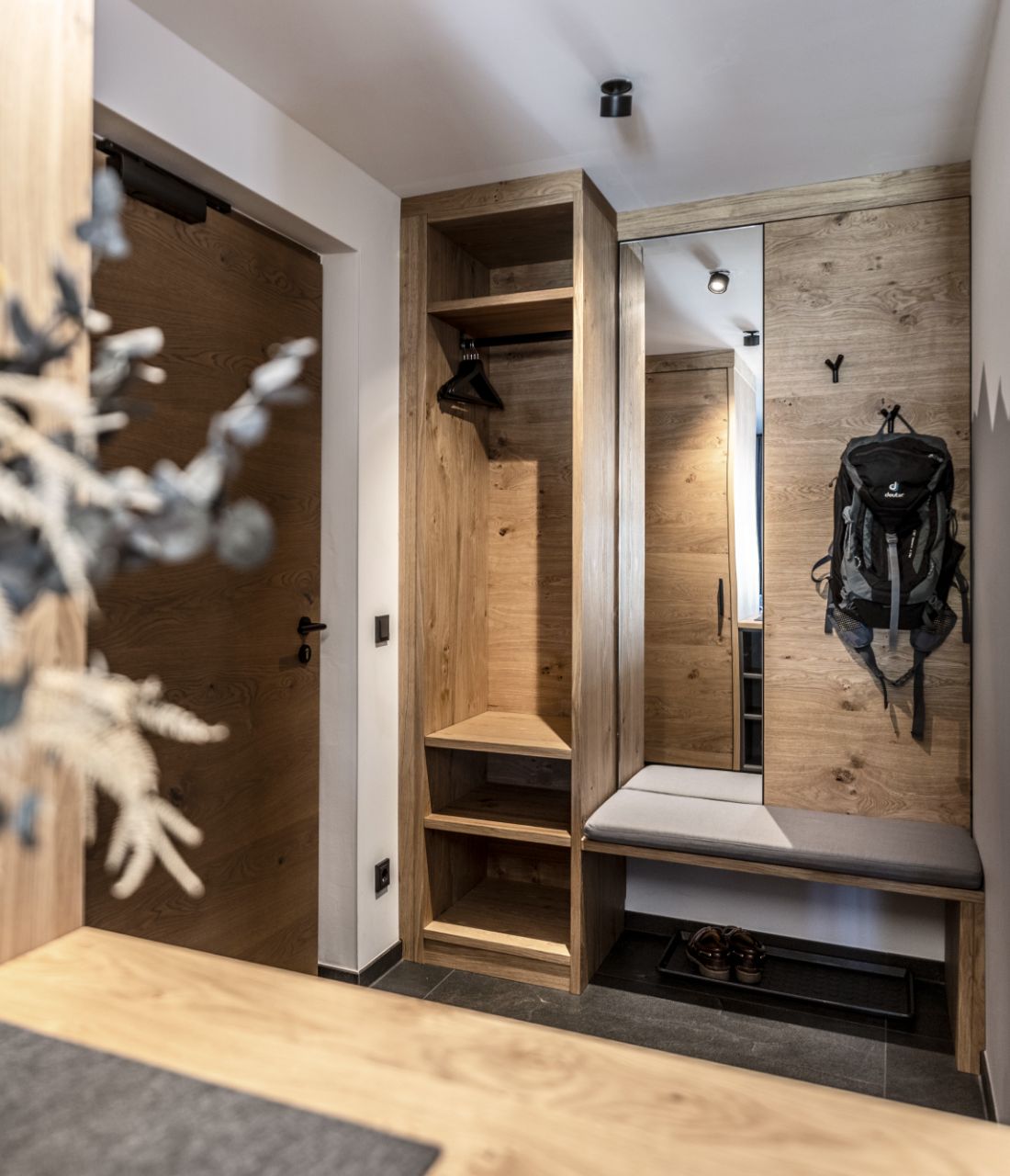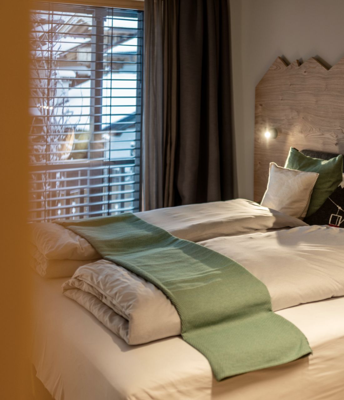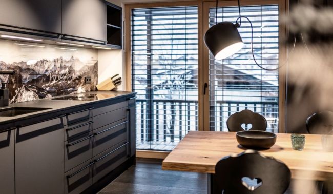 Bei der Ausstattung der Bergzeit Lodge waren uns naturnahe Materialien wichtig und eine hohe Wertigkeit der Dinge. Also: viel Holz und Stein, erstklassige Stoffe und Möbel, schöne Lampen. Eine Küche, in der es an nichts fehlt. Auch an die Kids haben wir gedacht – mit Kinderbett, Hochstuhl, speziellem Geschirr. Und für Schlechtwettertage gibt es Netflix.
